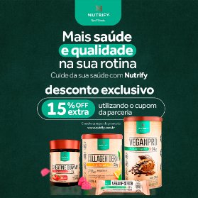 Regras: Desconto de 15% OFF no site oficial da Nutrify. Cupom cumulativo com outras promoções do site, exceto categoria moda e acessórios. Cupom não cumulativo com outros cupons. O desconto não abrange o frete.